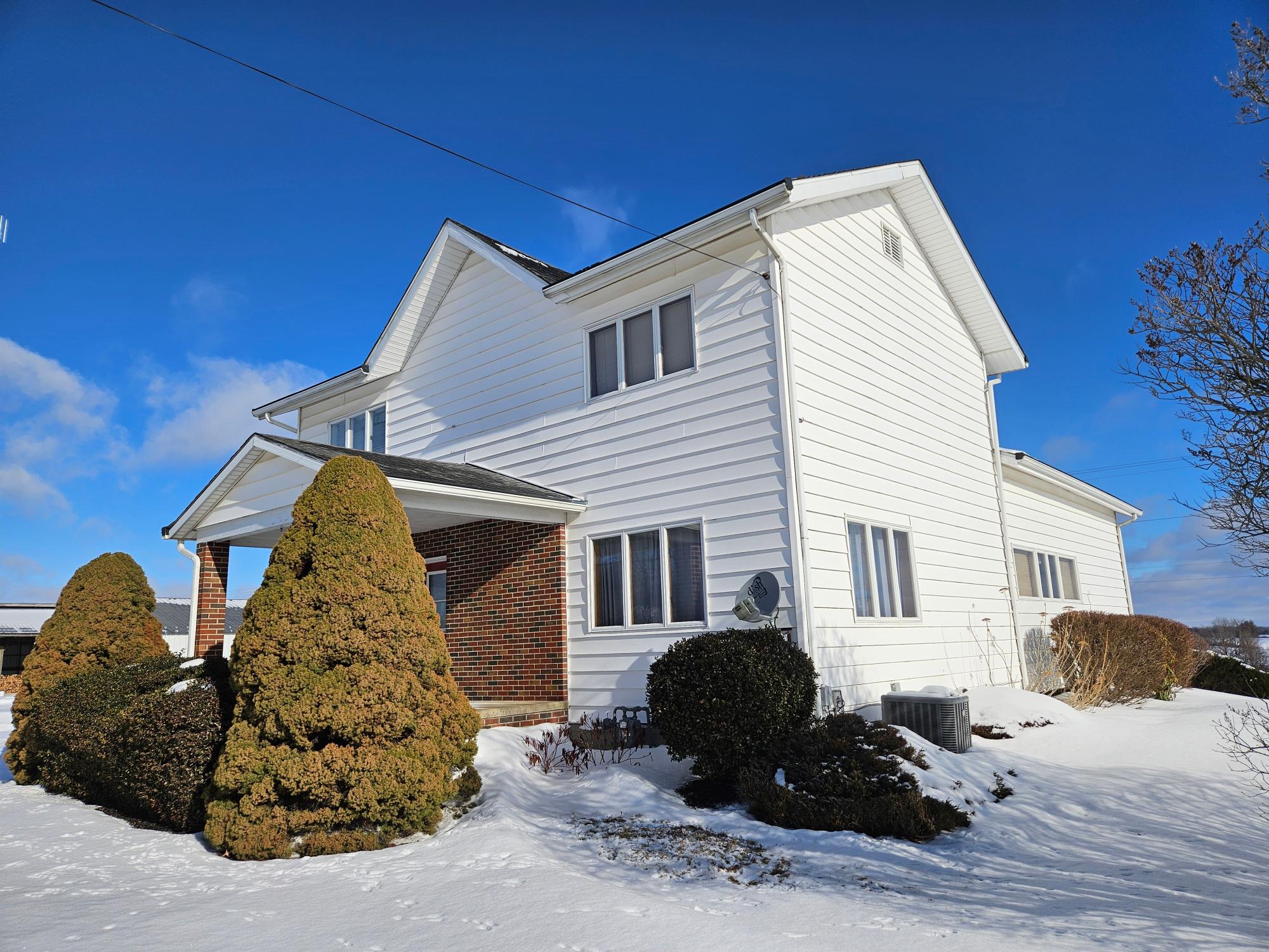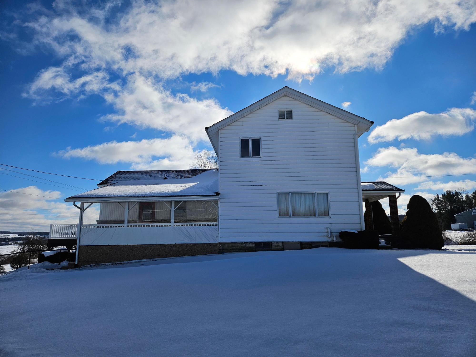 Check out this one of a kind 34 Acre farm in Russell, Pa! Let's start with a very well kept three bedrooms, one and a half baths with a stunning cherry kitchen with Corian countertops. So much useable space for thee serios cook in the family. Next, most of the home has beautiful hardwood floors that enhance a large dining are for the whole family to gather. a large living room with a fireplace for those cold days or just to relax in front of. Let's not forget an extra room that could be an office, family room, or a possible first floor bedroom. large sliding doors that lead to a very big deck that overlooks the property. The large entryway of the home also has the laundry area and large closet storage space. Now for the farm, a very large dairy barn built around 1984 has so much space to start that herd you have always wanted. there is also a newer pole building and equipment shed. Also, a large kennel, pasture, 3-sided heifer barn. Call today for a showing on this farm.